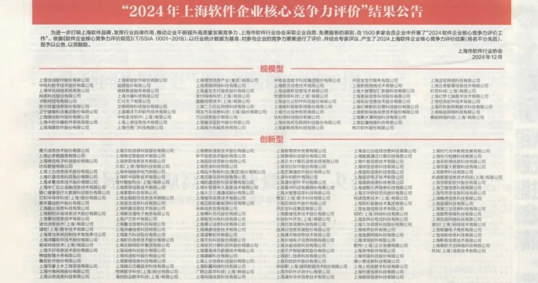 12月19日,由上海市軟件行業協會主辦,長三角國家技術創新中心、上海市軟件評測中心有限公司等單位聯合協辦的2024上海軟件創新論壇成功舉辦。在會上公布了“2024上海市軟件企業核心競爭力評價”結果,藝賽旗獲評“2024上海軟件核心競爭力企業(創新型)”。