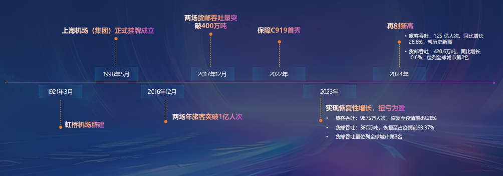 上海機場集團,作為百年門戶、世界樞紐,目前經營管理著上海兩個國際機場,擁有四個航站樓、一個衛星廳及七條跑道。